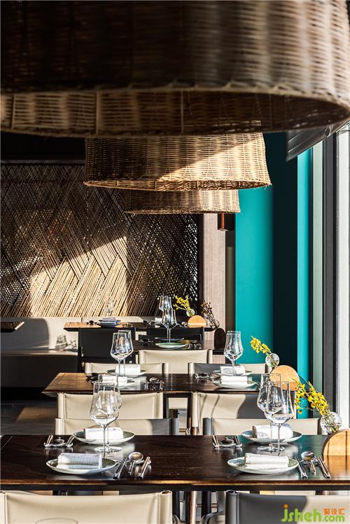 整個(gè)餐廳內(nèi),經(jīng)年的天然材料重新編織、切割又組合,在青灰色的肌底上作為結(jié)構(gòu),也作為藝術(shù)??此品闯5脑O(shè)計(jì)策略在禾苑中贏得了絕佳效果,北京餐廳設(shè)計(jì)陽(yáng)光從窗外投入依次落在交疊編織的竹隔斷上,再蔓延至深淺交錯(cuò)的老木頭、青石板、水泥地面、皮質(zhì)餐椅、豐茂植物,本不大的空間內(nèi)呈現(xiàn)出豐富厚重的層次質(zhì)感。