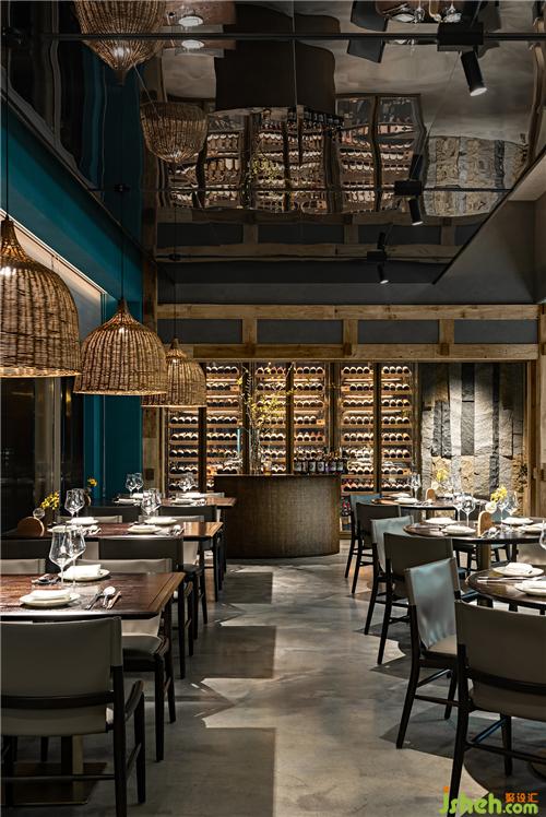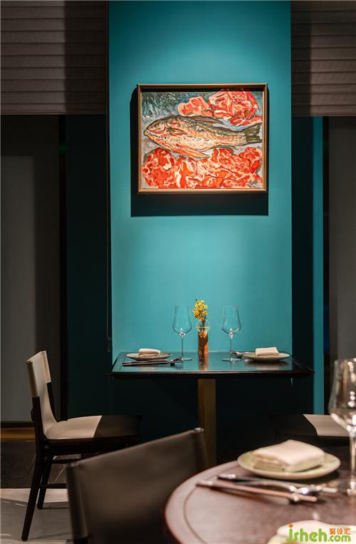 與之相對(duì)應(yīng)的,是靠窗一側(cè)清爽的孔雀藍(lán),在沖撞里帶來年輕的自由感和愜意,鏡面吊頂將空間映入湖水般的波紋里,視線向高處伸展,北京餐廳設(shè)計(jì)可能的狹小空間感受立刻消散。餐桌椅材質(zhì)色彩大氣質(zhì)樸,但在造型上趨向輕盈舒適,無論從任何角度都在確保品質(zhì)的前提下?lián)肀晨?,而非形成距離感。