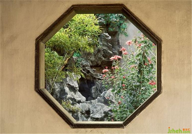 ▲中國(guó)傳統(tǒng)園林中以花窗借景
