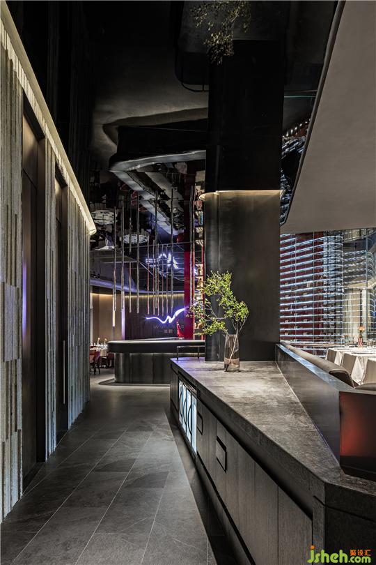 進入空間后,吳為打造餐廳結(jié)合酒吧的新興業(yè)態(tài),以多種方式留住年輕的消費群體,前衛(wèi)絢麗的細(xì)節(jié)設(shè)計將食客吸引的同時,粗糲質(zhì)樸的空間則帶來熟悉的日常煙火氣,地道精致的味覺與“提鮮”的戲劇藝術(shù)融入自然成了讓人流連難忘的點睛之筆。