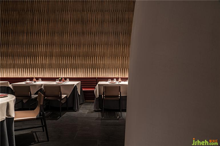 餐廳設計顆粒度的細微變化帶來身處其中的情緒轉化——光滑的現(xiàn)代感中適量混入粗糙顆粒,如同劃過我們情緒肌膚的溫暖沙粒,溫暖的時光感與源于市井的煙火氣合二為一,觸發(fā)眷戀。
