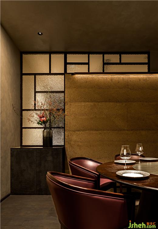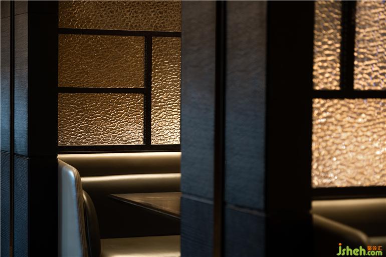 榆木結(jié)合玻璃窗格解決了卡座之間的私密性,前里臺州魚市餐廳設(shè)計(jì)從竹簾到燈具都穩(wěn)妥雅致,帶著一點(diǎn)時光感,而不會讓人緊張得正襟危坐。玻璃紋理營造細(xì)膩的局部,光線也因此更為生動,這種仿佛氤氳著水汽的觀感常常讓步履匆匆的人沉下心,回憶起某個熱氣騰騰的溫情時刻。