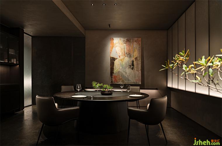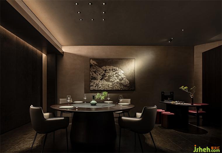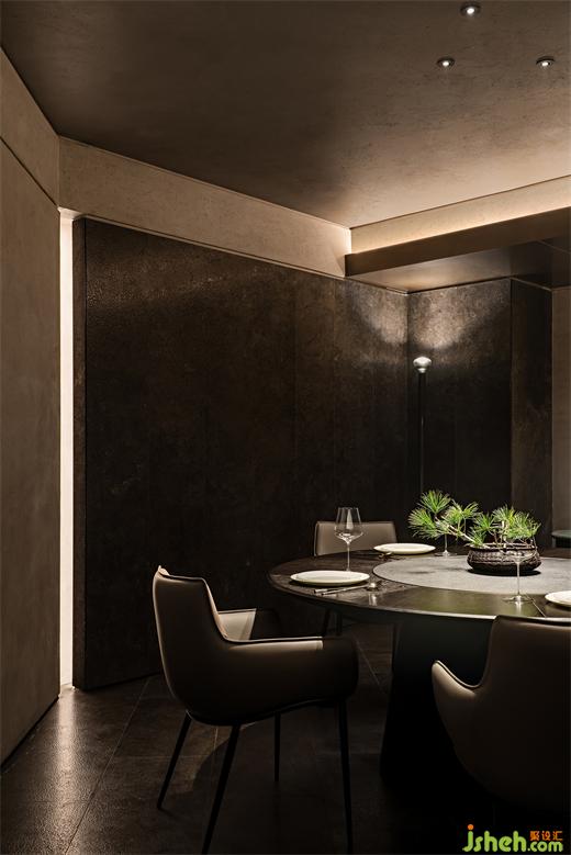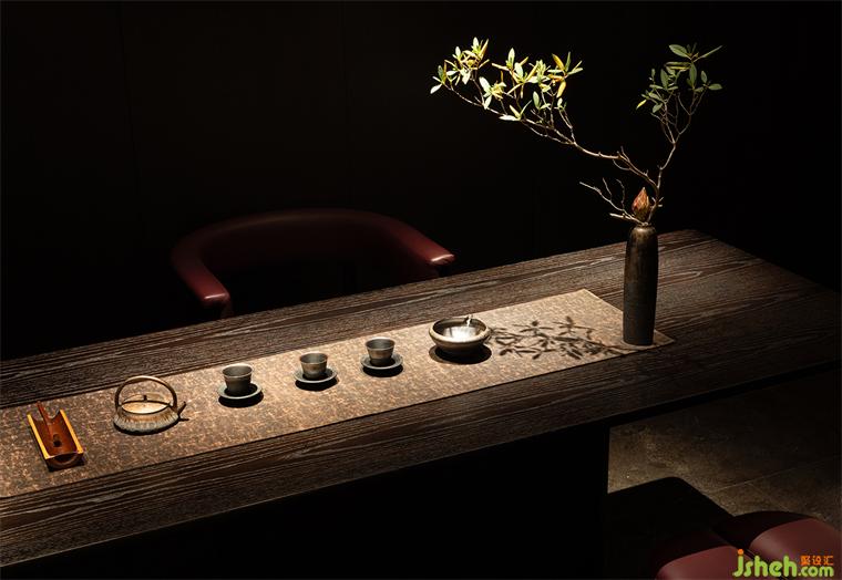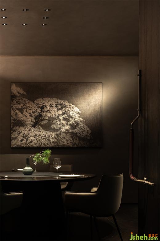 吧臺、茶臺等區(qū)域構(gòu)建出微景別的自然,北方冷空氣里的蒼勁生機(jī)與文人書房的微縮園林皆有呈現(xiàn),這些自然的虛構(gòu)空間將食客的意識推出城市、推向自然。它們留白的想象空間比極盡還原的山水更貼近臻選店深遠(yuǎn)含蓄的價值傳達(dá)。