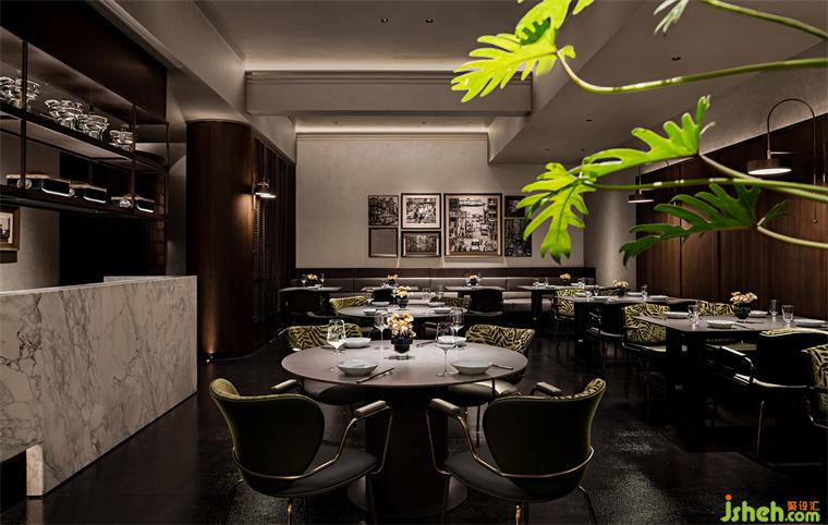 穿過孔雀翎色花磚長廊,掠過上世紀(jì)港島舊影,柔軟的燈光滑下木百葉,熱帶植物投下斑駁的影子。火鍋設(shè)計(jì)在升騰的鍋氣和酒精攪勻的空間里,回憶與懷舊此時(shí)就像一艘慢船,拖著人悠悠駛向記憶深處。