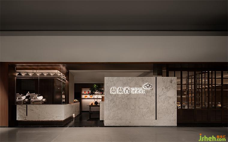 火鍋設計門頭是餐廳和skp間的物理界面,厚重的白色石材低于天花,這面如影壁或屏風意向的LOGO墻稍稍遮擋了內部,同時拉出了空間層次,它統(tǒng)領了內部的體驗:在有限空間里,各區(qū)域片段的感官組成印象的疊加,平??臻g因為韻律變化而妙趣橫生。