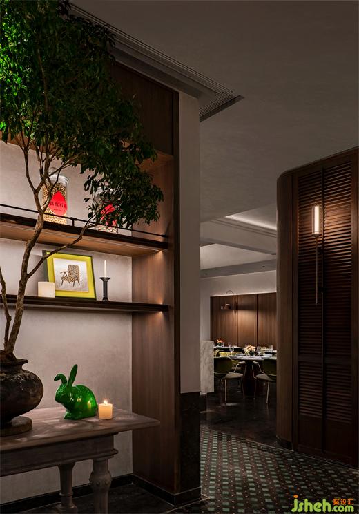 火鍋設計風格是新空間撬動情緒的密鑰。經(jīng)過變體的木質護墻板、百葉窗、花磚、軟包扶手椅、黃銅壁燈......設計書寫了一幅南洋、東洋與西洋混合的懷舊手卷,港式火鍋的基因只是一個引子,它牽出滄桑巨變的百年歷史中,是永不褪色的亞太文化風情和華人的不朽傳奇。當把令人迷醉的大歷史拓印在現(xiàn)代空間中,其中的力道使設計師敢于訴諸一種融合的風格表達。
