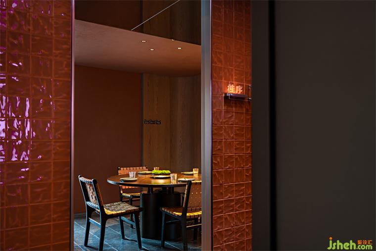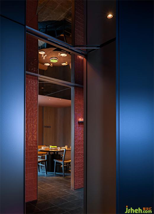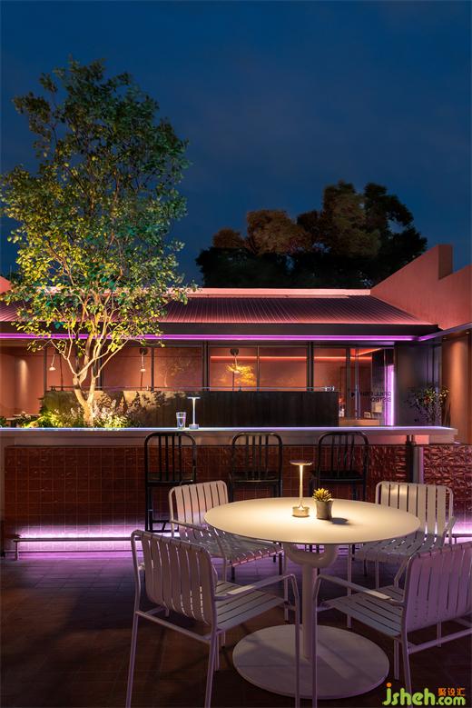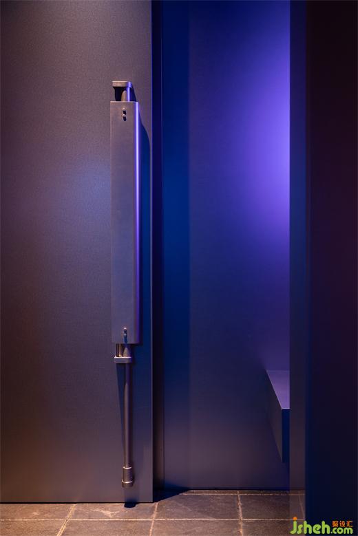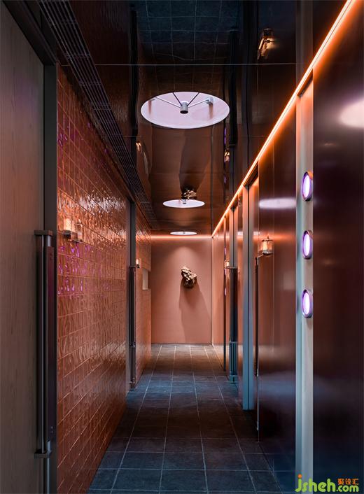 非露天區(qū)劃分為四間VIP包房,從下仰望,走廊屋頂打開圓形天窗,讓人聯(lián)想到太空艙飛離地球的瞬間灑下機(jī)械的冷光。
