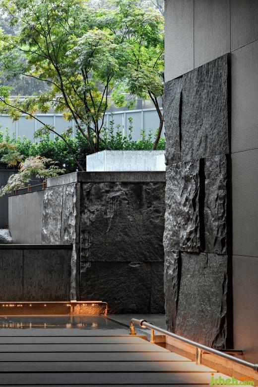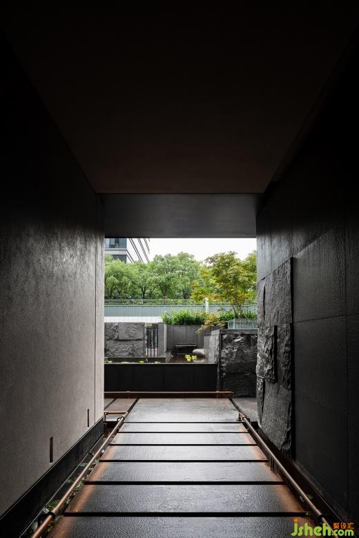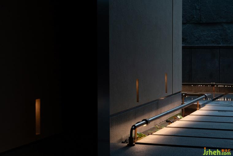 灣谷科技園下場(chǎng)廣場(chǎng)內(nèi),即山語(yǔ)享有158㎡的室外庭院,茶室設(shè)計(jì)利用垂直方向豐富細(xì)膩的高度差,使庭院與室內(nèi)亦形成了亭臺(tái)、湖島的意象關(guān)系,隱匿與逡巡漫游隨之發(fā)生,庭院景致則隨著漫游不斷疊錯(cuò)掩映——水邊有岸,岸上有石,石隱于竹,竹掩山墻......設(shè)計(jì)巧妙隱去人們對(duì)邊界的感知,想象和意境并不囿于既有的尺度。