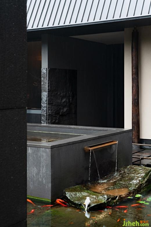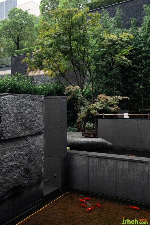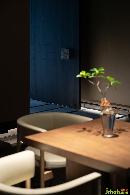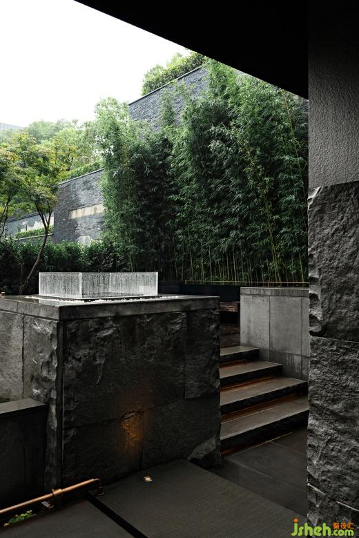 客人由東側(cè)門經(jīng)庭院進(jìn)入餐廳,拾級(jí)而上,經(jīng)踏步、浮橋、池水、組石、竹林,庭院時(shí)而強(qiáng)有力,時(shí)而靜謐、瀟灑、寂寂,皆隨游園者心境的變化而變化,并無定式,游園此時(shí)是茶事悠長(zhǎng)婉轉(zhuǎn)的序言。