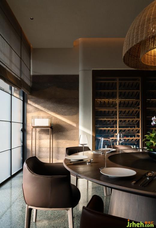 餐廳設(shè)計包房內(nèi),透光布簾隔出一個鄉(xiāng)土氣息十足的私密空間,水磨石、實木與肌理漆巧妙的使當(dāng)代感沉淀在底部,舒適耐用的桌椅餐具、豐富的窖藏、茶臺等大大拓寬了就餐人群和就餐屬性。