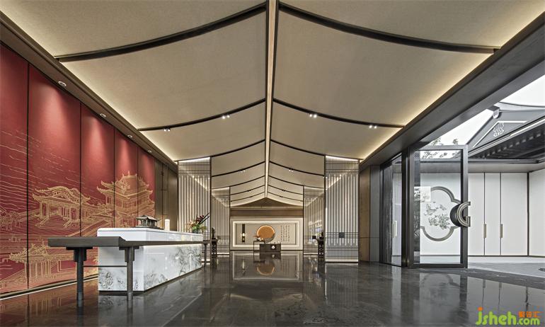 仰觀大宅形制,斗拱榫卯堆疊出極致的穹頂美學,交錯蔓延而上,營銷中心設計仿佛文人墨客在追求學問的道路上,那永不停歇的步履。