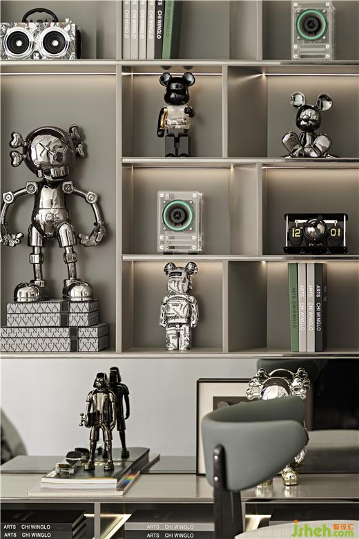 潮玩手辦的加入,為空間增添一絲生動(dòng)活潑之氣,亦隱含著時(shí)代的生機(jī)與朝氣。