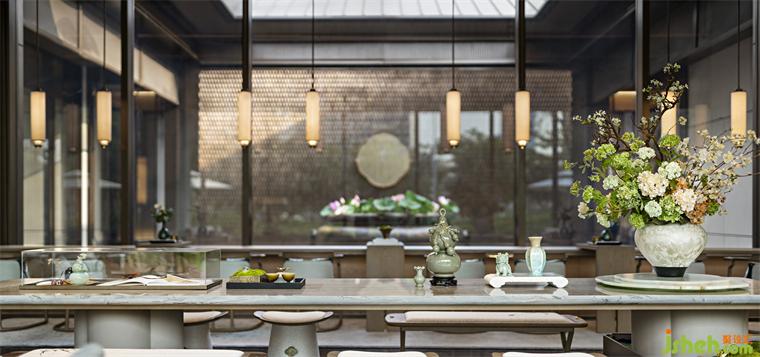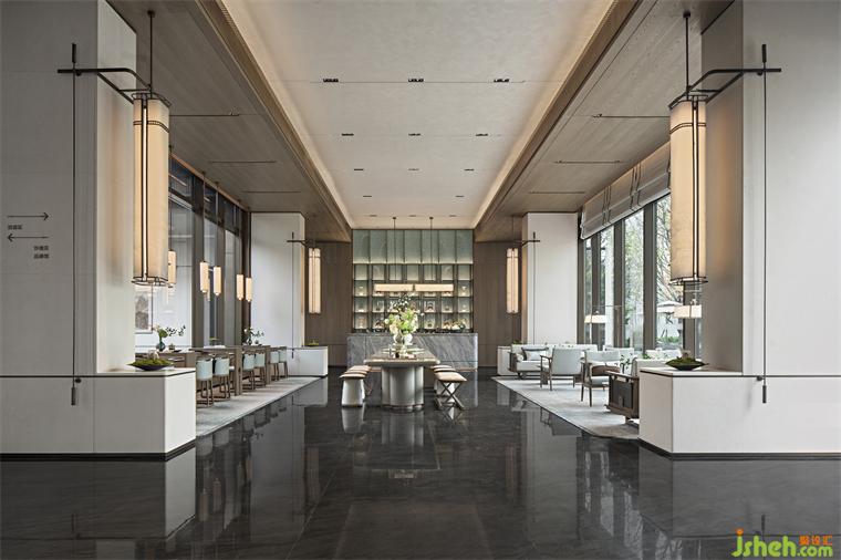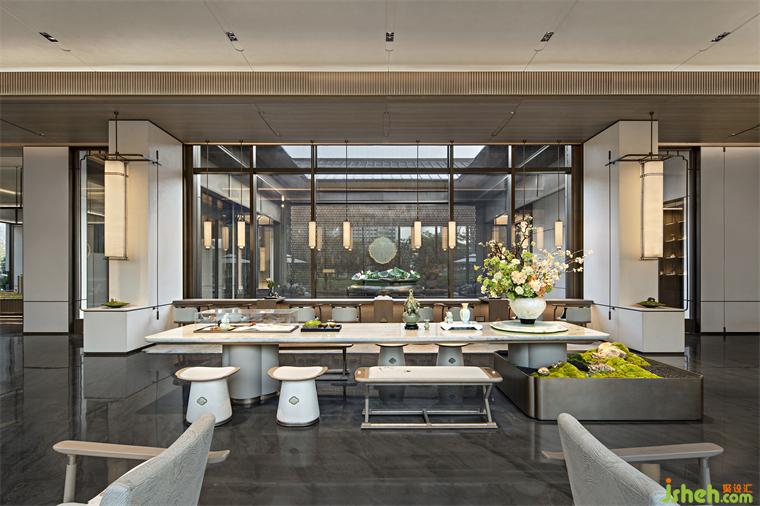 “翠竹參天情向往,綠楊飛雨水中舟?!彼ㄓ朴疲瑺I(yíng)銷中心設(shè)計(jì)延展出山水之外的空蒙悠遠(yuǎn),流水行地,描摹出一方空靈與飄逸。