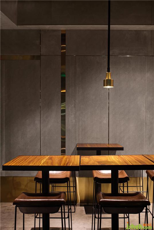 主要材料:深色木飾面、水泥板、銅色不銹鋼、鈦黑不銹鋼、本色不銹鋼等