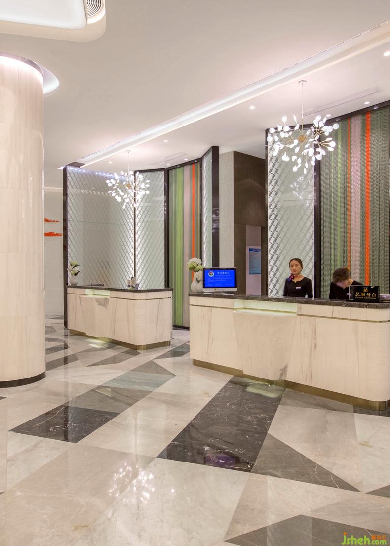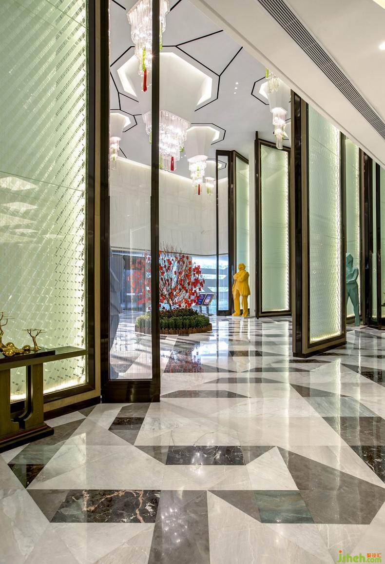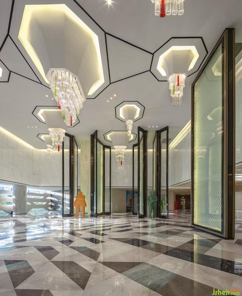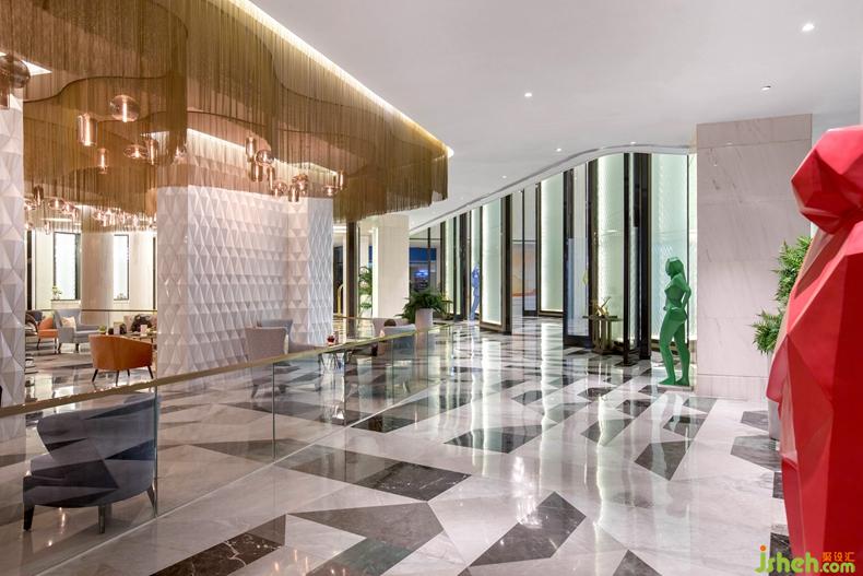 大堂是對客人的第一印象,在此設(shè)計師添加現(xiàn)代“園林”設(shè)計元素,展現(xiàn)不同的創(chuàng)意設(shè)計吸引眼球并給予感受;天花裝飾與地板的幾何圖形相互呼應,天花上的燈以深圳鳳凰樹的花與枝葉進行設(shè)計,采用紅色與綠色點綴琉璃,讓人感受到熱情且接近大自然生機,鳳凰樹還有“葉如飛凰之羽,花若丹鳳之冠”之稱。設(shè)計公司