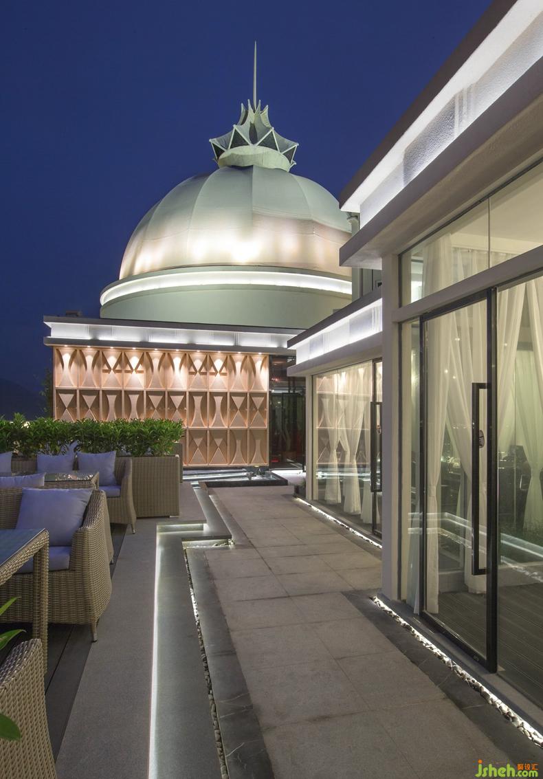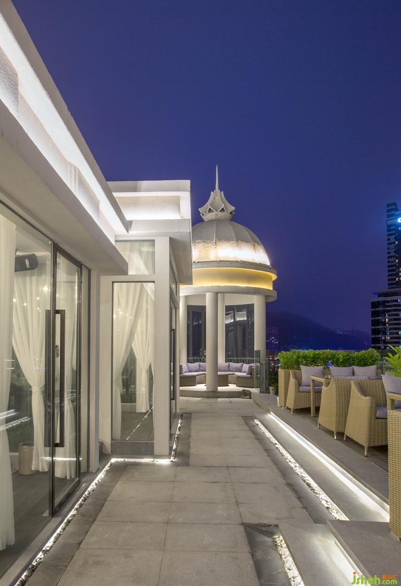 酒吧位置在酒店頂樓19層面朝大海,外觀以歐式城堡呈現(xiàn) ;這是酒吧戶外的一部分。設(shè)計公司