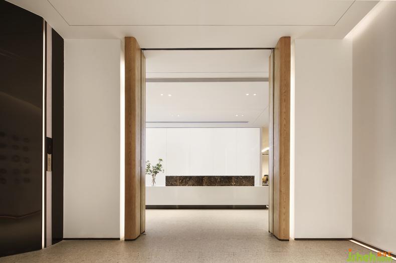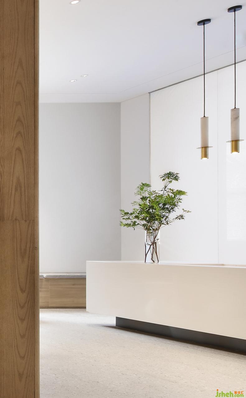 陽(yáng)光透過(guò)百葉窗造訪空間,輕柔靜謐,在窗邊坐臥一時(shí),心情舒暢,辦公室設(shè)計(jì)自然又清爽。品牌希冀傳達(dá)的專業(yè)性、自然呼吸感,在入戶的此時(shí)便潤(rùn)物無(wú)聲地植入到了人的感官之中