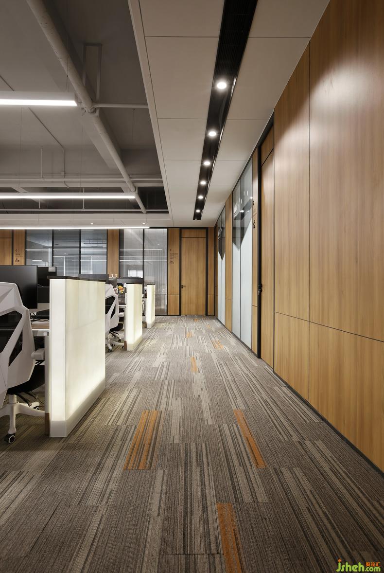 在秩序井然的理性之中注入飽含人文關(guān)懷的感性元素,在基本的物理功能滿足之外創(chuàng)造接近自然的精神需求,現(xiàn)代辦公空間總是在理性與感性、物質(zhì)與精神等多重相對矛盾中實(shí)現(xiàn)平衡。原木無疑是材料施予空間的魔法,辦公室設(shè)計(jì)棕色具有包容、中和的完美效果,清淺與深暗相互映襯,給人無窮的想象空間