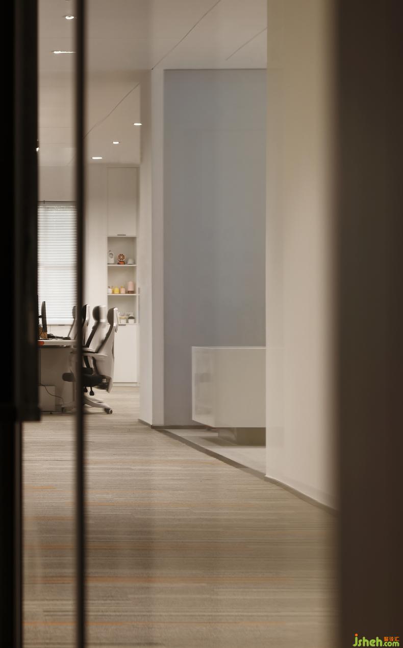 與公共辦公區(qū)相對規(guī)整統(tǒng)一的辦公桌椅相比,小巧精雅的會客室與供員工聊天社交的休閑區(qū)則充分顯示了企業(yè)文化的自由度,以及由此營造的濃濃的居家體驗(yàn)。在嚴(yán)肅高效的工作之外,辦公室設(shè)計(jì)員工理應(yīng)擁有一方相對放松的空間獲得精神壓力的釋放,或喝茶,或聊天,或閱讀