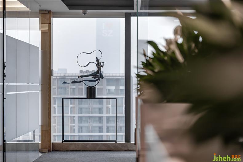 全景落地窗前的神女飛天像不僅是一種文化的藝術(shù)形象,辦公室設(shè)計(jì)更是代表了婀娜多姿女性柔美的形象,不斷地給人們以啟迪和美的享受。