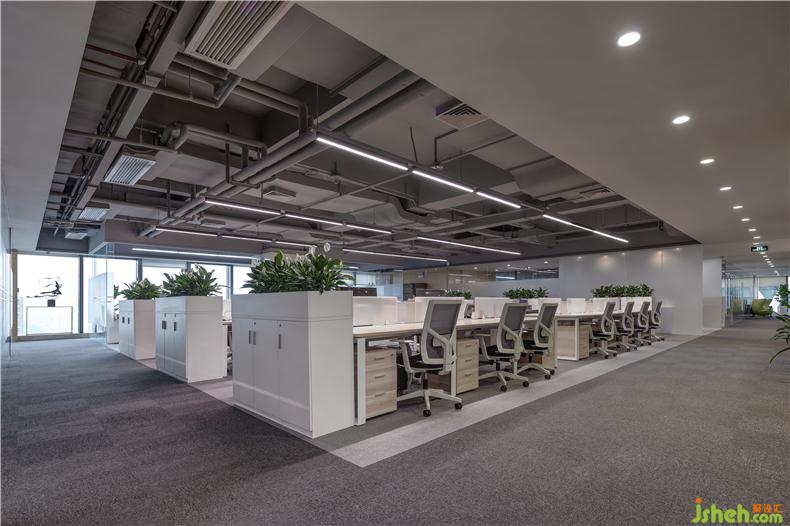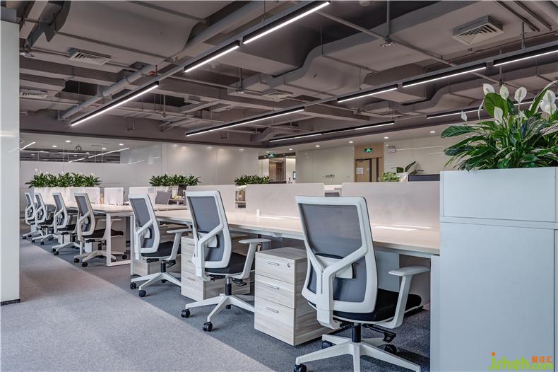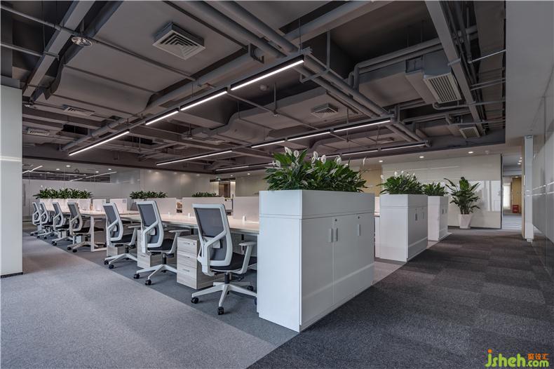 辦公區(qū)域栽有大量綠植學名白掌,葉片翠綠,花形酷似鶴翹首,辦公室設計亭亭玉立,潔白無瑕,被稱為“清白之花”更是貼合可思美對“美”的一種追求
