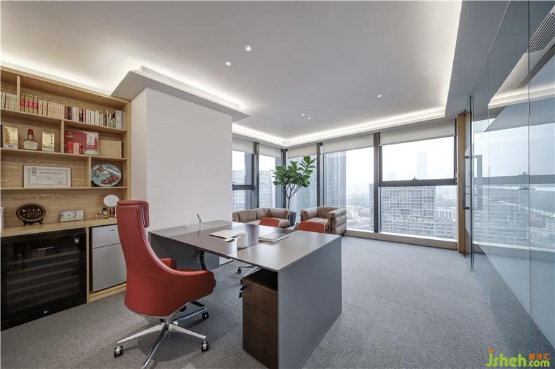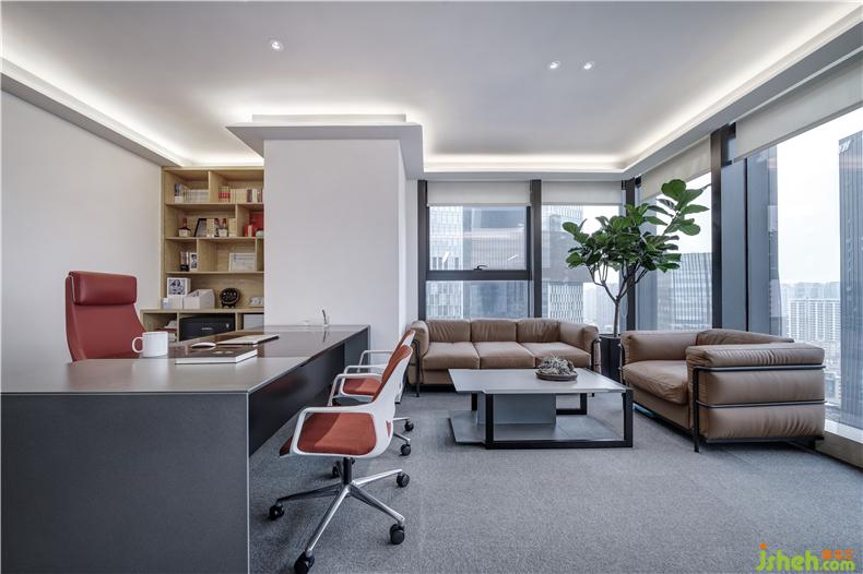總裁室減去了辦公中的沉重感,以年輕化、時尚化來塑造,所有的細節(jié)都看上去特別簡潔、大氣辦公室設計