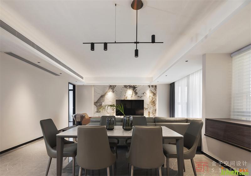 主要材料 | 大理石、多層實木板、免漆天然飾面板、黑鈦鋼條 、藝術(shù)涂料、舍予全屋定制