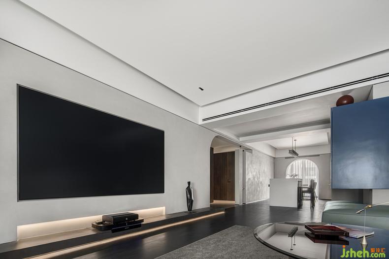 電視背景聯(lián)合玄關(guān)以及用餐區(qū)的一個大塊面