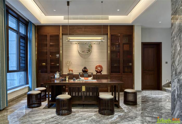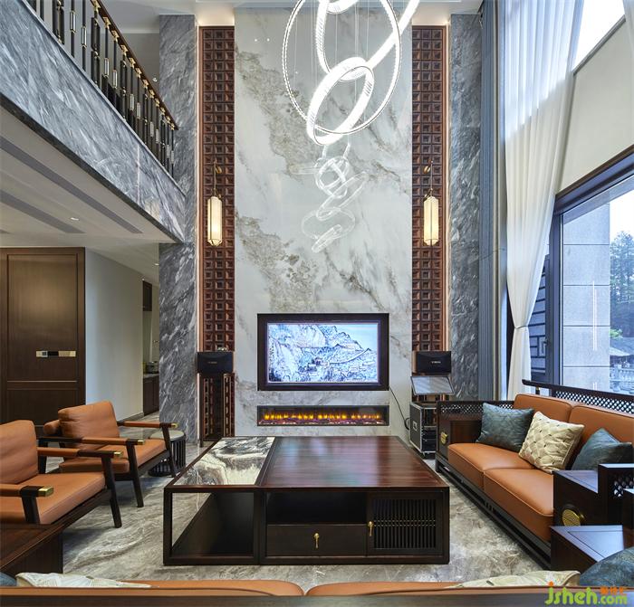 新化別墅裝飾設(shè)計師把中式元素與現(xiàn)代時尚巧妙結(jié)合,體現(xiàn)現(xiàn)代中式清新脫俗的氣息。