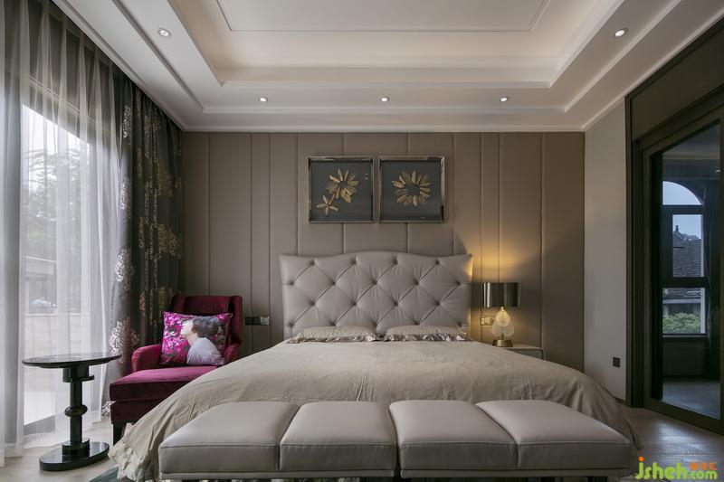 臥室沒有選用浮夸的標(biāo)簽,寢居、睡眠質(zhì)量是設(shè)計(jì)的首選。設(shè)計(jì)公司去掉更多的色彩關(guān)聯(lián),選用更多的靜態(tài)元素,在不同時(shí)間段,進(jìn)入臥室空間都能感受到休閑、放松的狀態(tài)。其次,臥室空間輔助功能與衣帽間、衛(wèi)生間等關(guān)聯(lián),既能劃分視覺動(dòng)線,也大大提升空間的舒適度。