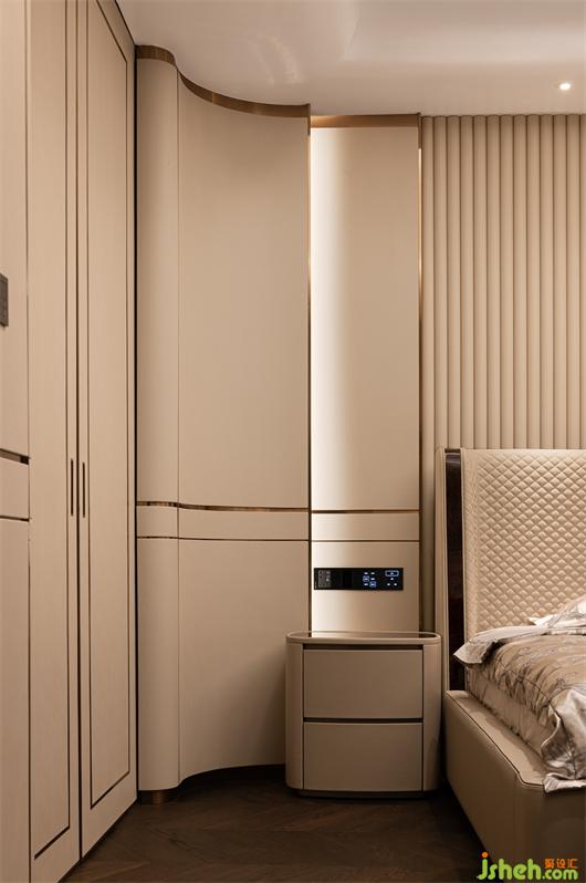 主臥整體性,高雅精致,絲絨床品的西式優(yōu)雅,呈現(xiàn)出居住態(tài)度與精致品味的生活化表達(dá)。不同材質(zhì),統(tǒng)一色調(diào),最終通往內(nèi)心對(duì)美好生活的熱愛。抬眼望向窗外的那一刻,室內(nèi)的奢雅與自然的靜美達(dá)到了平衡舒適的境地。