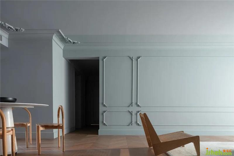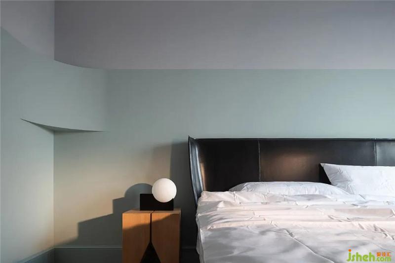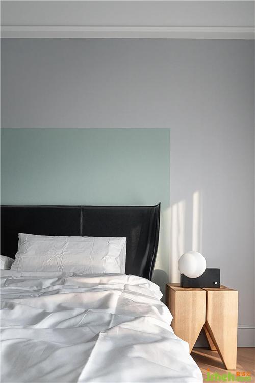 我們用最簡單的材質(zhì)去支撐臥室的界面,室內(nèi)設(shè)計(jì)師水淺蔥色的漆面貫穿全屋,在節(jié)省預(yù)算的同時(shí)也實(shí)現(xiàn)了空間細(xì)部的設(shè)計(jì)感。