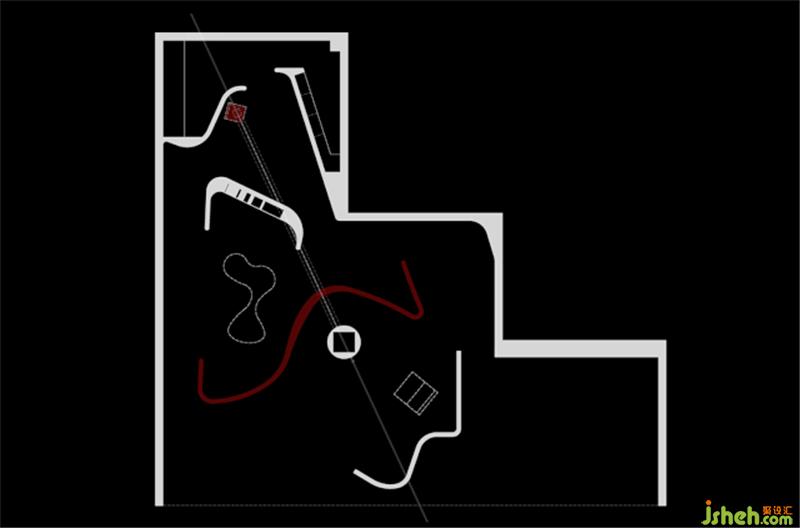設(shè)計(jì)通過(guò)對(duì)高度落差的設(shè)定,以“L型”裝置貫穿前后,來(lái)表達(dá)更多的精神內(nèi)核與藝術(shù)性。