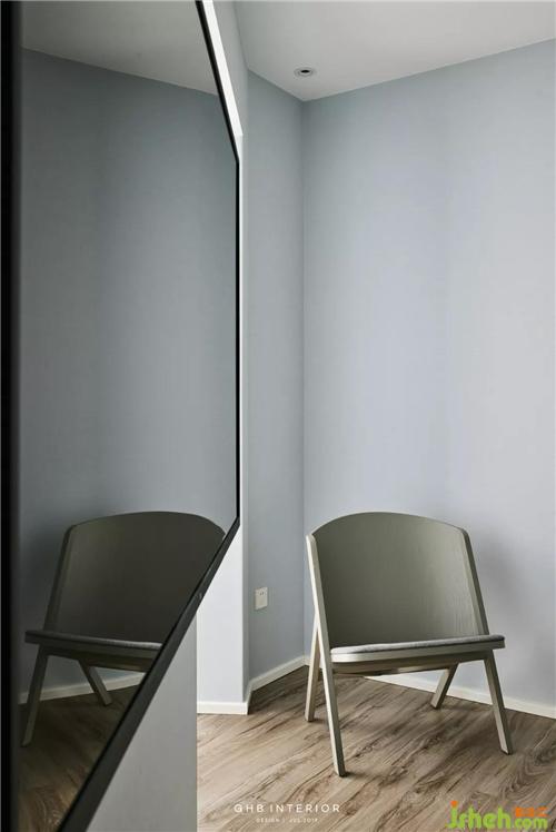本案以純粹材質(zhì)來(lái)表現(xiàn)空間氛圍,因此材質(zhì)的選擇非??简?yàn)設(shè)計(jì)師的藝術(shù)功底。在全案執(zhí)行過(guò)程中,墻紙、窗簾、地板等都會(huì)選取小樣到工地現(xiàn)場(chǎng)比對(duì),以空間自然光線下的材質(zhì)屬性作為選材依據(jù),以保證落地效果。