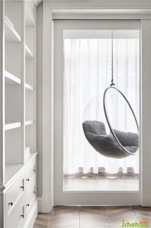 公共區(qū)域大面積使用了灰色進(jìn)行渲染,我們利用不同的角度、深度來(lái)強(qiáng)化各區(qū)域的不同維度,消融并延伸灰階背景的感官邊界。裝修設(shè)計(jì)空間不僅僅是空間本身,而是人置身其中的情感容器,因此在家私的選擇和軟裝的配置上,我們用自然溫和的療愈色系來(lái)襯托出空間的寧?kù)o感。