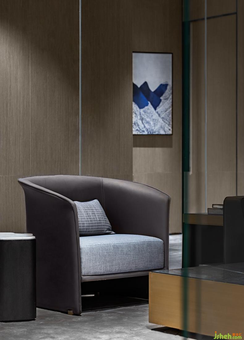 致廣大而盡精微,在小處領(lǐng)略微妙的含義。洽談區(qū)的設(shè)計(jì)以簡(jiǎn)潔有序的空間布局、清冷簡(jiǎn)約的石材、淡雅而節(jié)制的素色沙發(fā),搭配相得益彰,自然的形態(tài)描述出生動(dòng)的儀式感,所選用意大利Minotti品牌家具,注重舒適度及設(shè)計(jì)感的雙重呈現(xiàn)。
