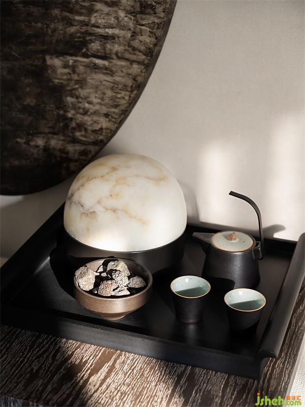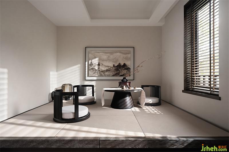 閩南愛(ài)好喝茶文化成為別墅的設(shè)計(jì)主軸,在二層,藺草席鋪就的榻榻米上圍爐夜話(huà),山間天籟成為最好的背景音。黑白灰的無(wú)色彩設(shè)計(jì),退后成為背景,恰好為生活空間留白。