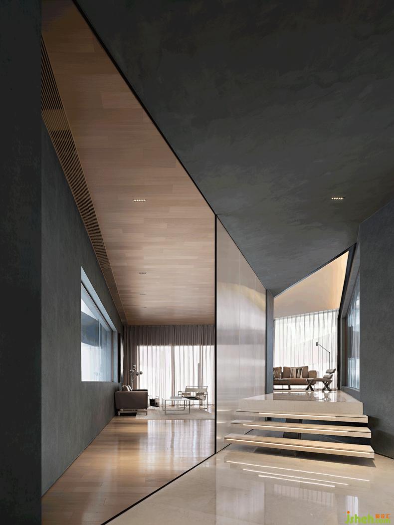 走上二樓,空間形態(tài)斜切交錯(cuò),并置了兩間VIP接待室,一間致敬經(jīng)典設(shè)計(jì)藝術(shù),另一間凸顯當(dāng)下品質(zhì)生活,以滿足多樣的功能需