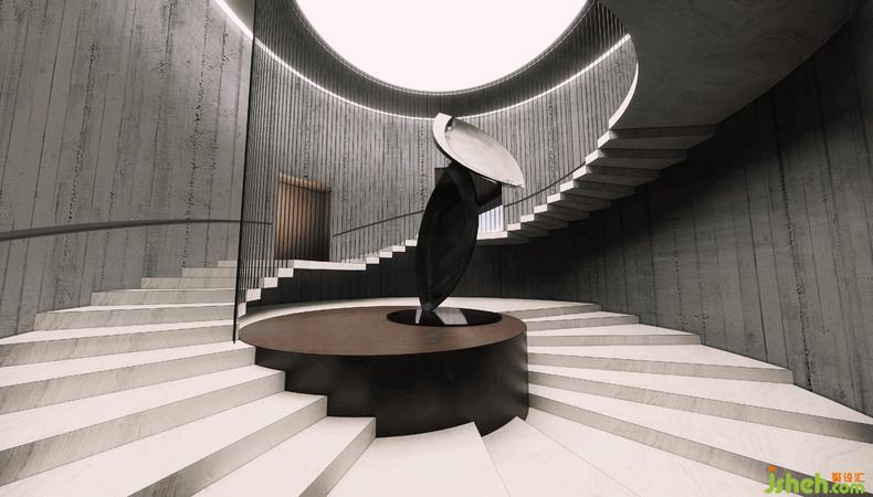圓筒空間自然獲得了一種向心力,也以一種邀請(qǐng)的姿態(tài)和活潑的情趣,讓人想拾級(jí)而上,在游走的過(guò)程中,窺探一個(gè)個(gè)門(mén)洞背后的未知可能