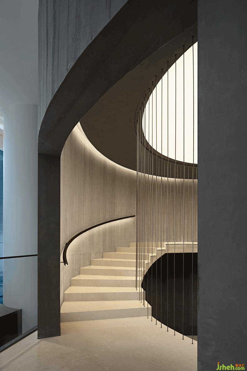 沿二層旋轉(zhuǎn)樓梯盤(pán)旋向上,探索清水混凝土圓筒結(jié)構(gòu),可以撫摸到樸素細(xì)膩的建筑構(gòu)成之美。單純卻充滿力量感的材質(zhì)一氣呵成,回歸設(shè)計(jì)的初心。