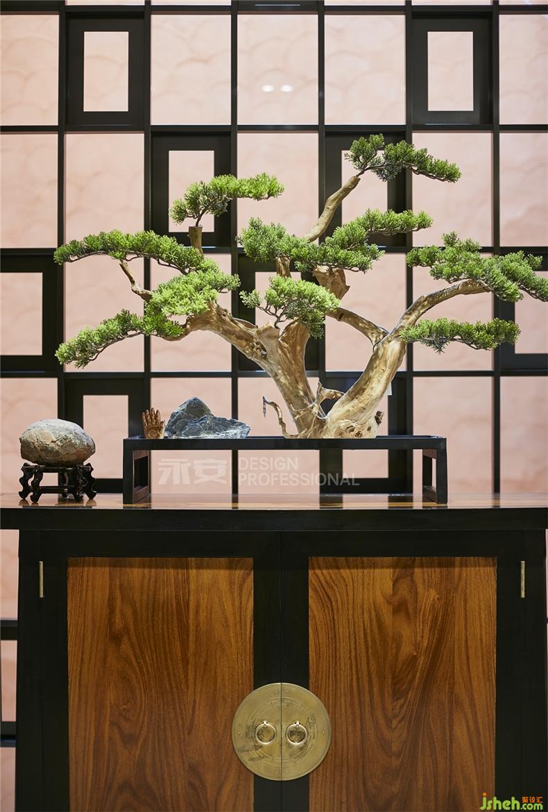 玄關處擺上松樹盆景,青松之品質亦是主人的氣質。別墅裝修設計