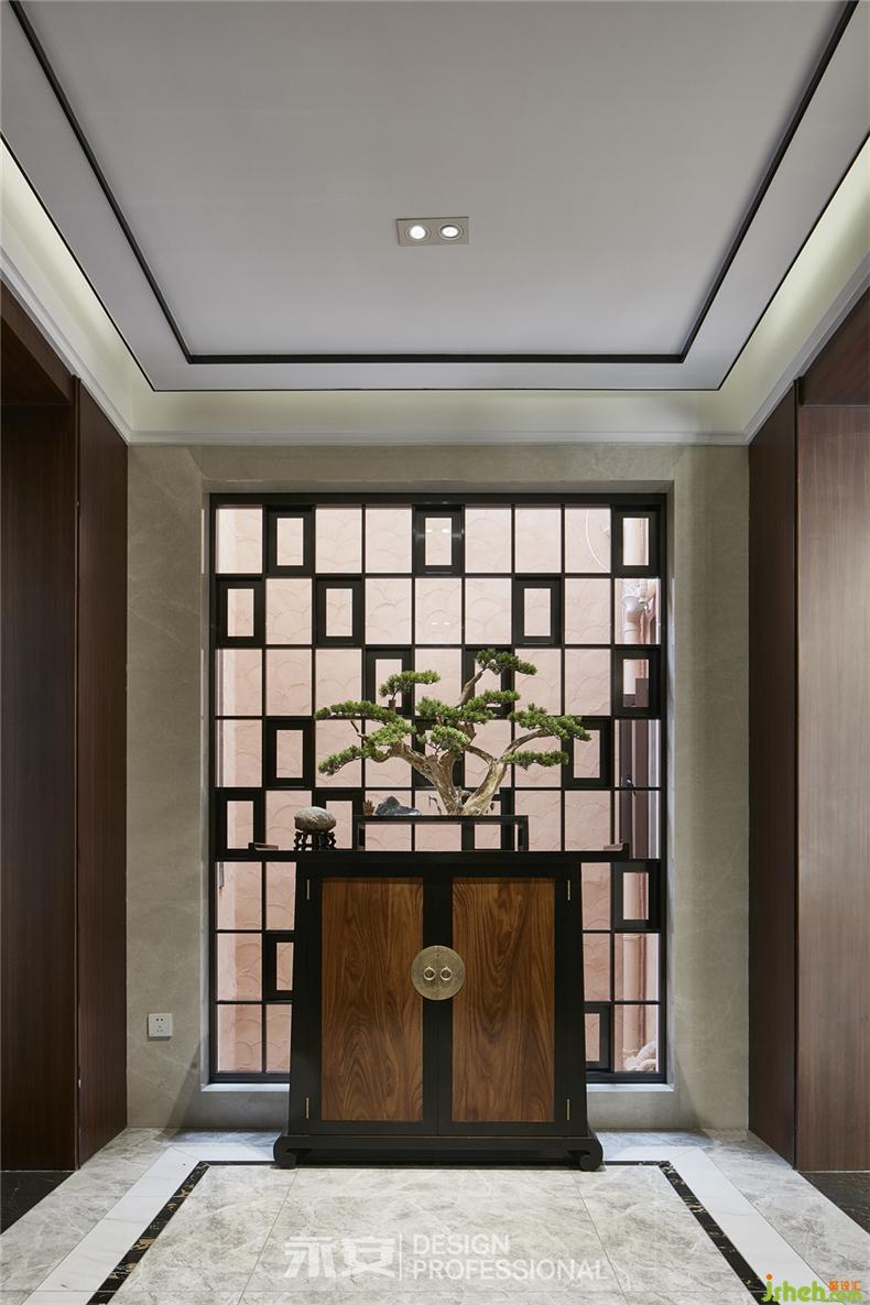 玄關是開門的第一道風景,中國風展示的是一種含蓄的完美,采用窗欞的布置,別墅裝修設計打造明亮柔和的入戶,樸實無華從第一眼開始。