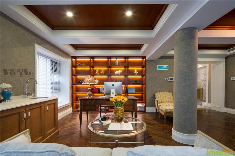 書房沉穩(wěn)大氣卻不失家的溫馨,可以全家在同一空間里工作學(xué)習(xí),即互不打擾也能感受家人的別墅裝飾