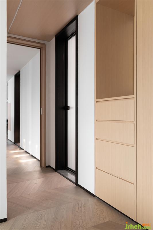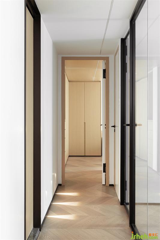 開敞靈活的布局使原本狹長(zhǎng)擁擠的過道空間得以釋放