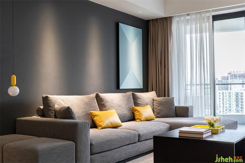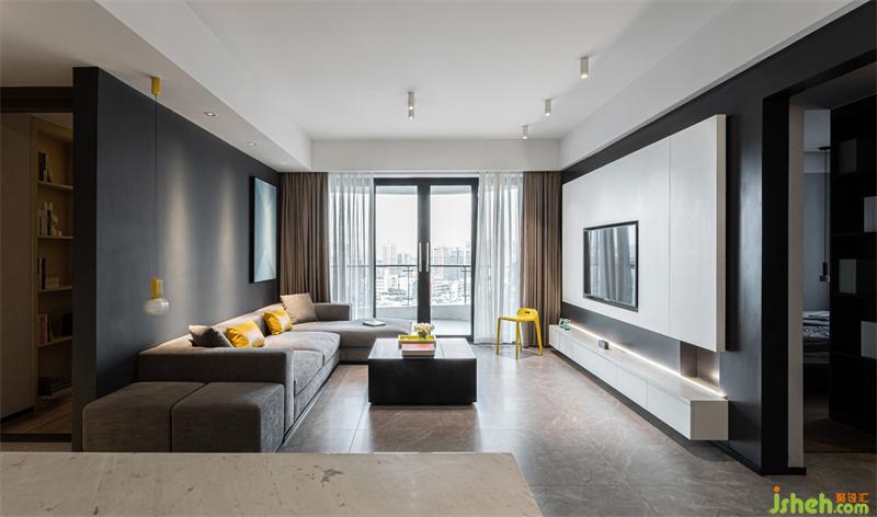 整體以黑白灰為基調(diào),黃色和淺藍(lán)色作為輔助跳色來調(diào)節(jié)整體色彩關(guān)系,突顯現(xiàn)代時(shí)尚的空間氛圍。