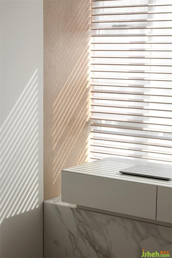 飄窗因為結(jié)構(gòu)的限制,實際的利用效果往往并不理想。家裝設(shè)計主臥飄窗的區(qū)域我們定義為梳妝或收納區(qū),通過造型的疊加與穿插產(chǎn)生結(jié)構(gòu)力量感, 也提高了功能的使用率,激活空間價值。
