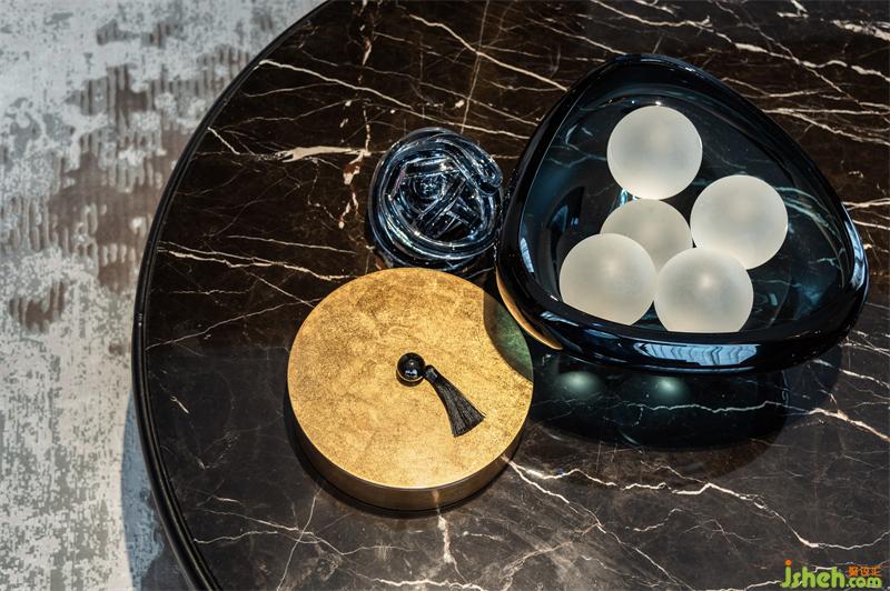 原石的茶幾加上玻璃材質(zhì)的器皿,讓空間通透起來(lái),即便是多重色彩的碰撞,也竟能完美疊加,繁復(fù)感盡消,反而增了些明亮與開(kāi)闊。