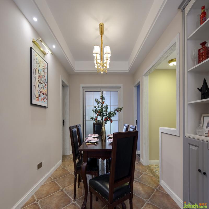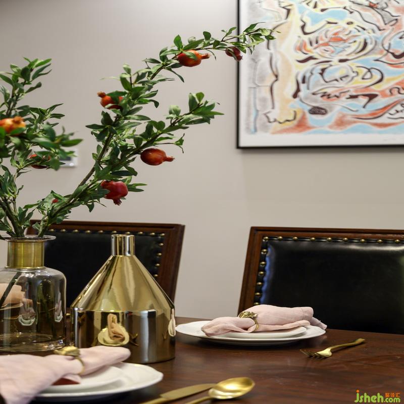 用餐區(qū)的細(xì)節(jié)設(shè)計(jì)令人耳目一新。室內(nèi)設(shè)計(jì)師選擇得金色餐具讓給家中的古典氛圍帶去了不少現(xiàn)當(dāng)代的潮流品位。