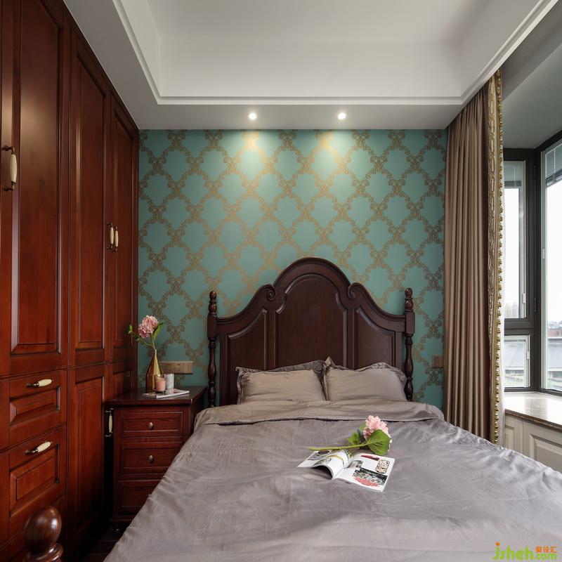 邁入主臥,仿佛走進(jìn)了一個巨大的珠寶盒,極具奢華質(zhì)感。鑄銅拉手和紅木家具的搭配低調(diào)而華麗,毛莨葉花紋裝點(diǎn)的孔雀綠墻紙仿佛是奧林匹斯山上擇取的靈感,飄窗一側(cè)的窗簾猶如華蓋一般搖曳飄逸,室內(nèi)設(shè)計(jì)師使金色花樽與整體裝飾協(xié)調(diào)一致,是房間中的點(diǎn)睛之筆。