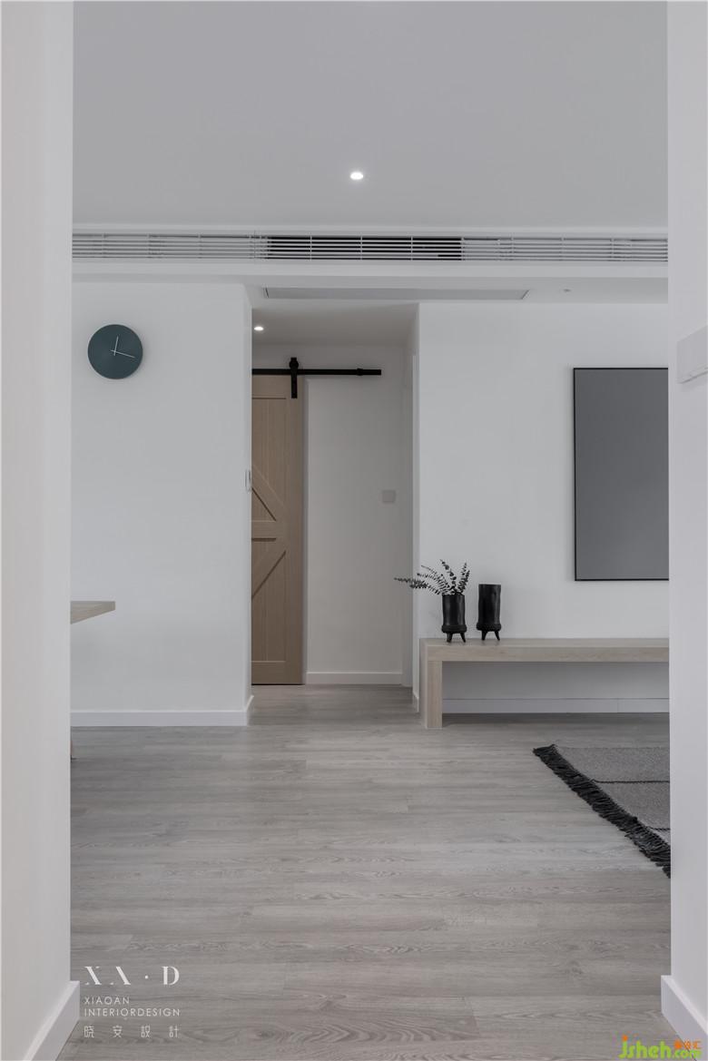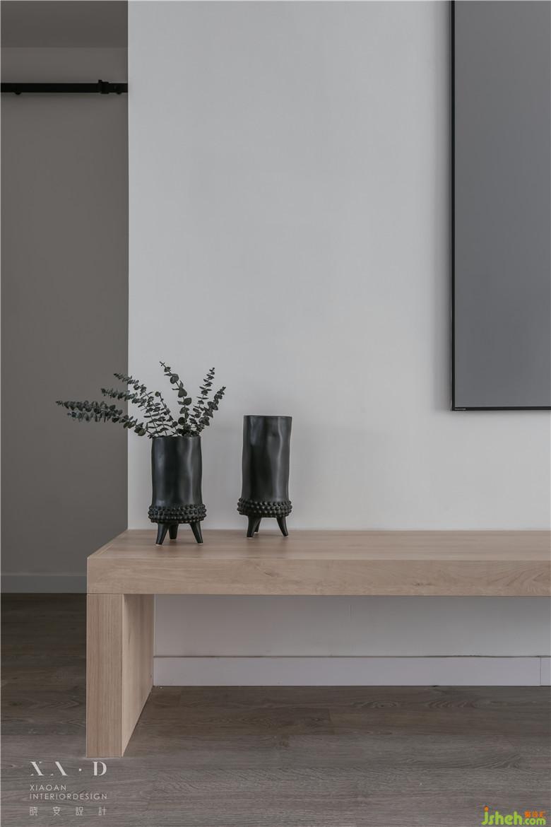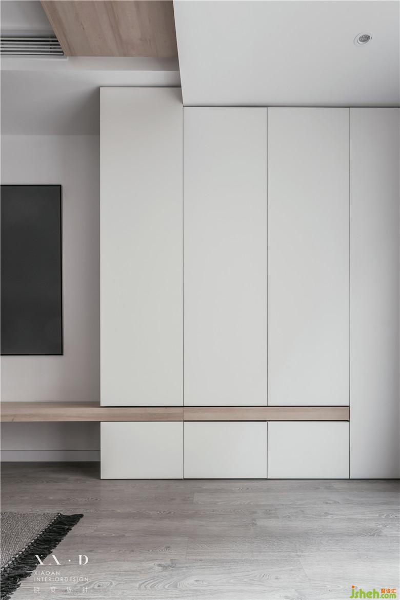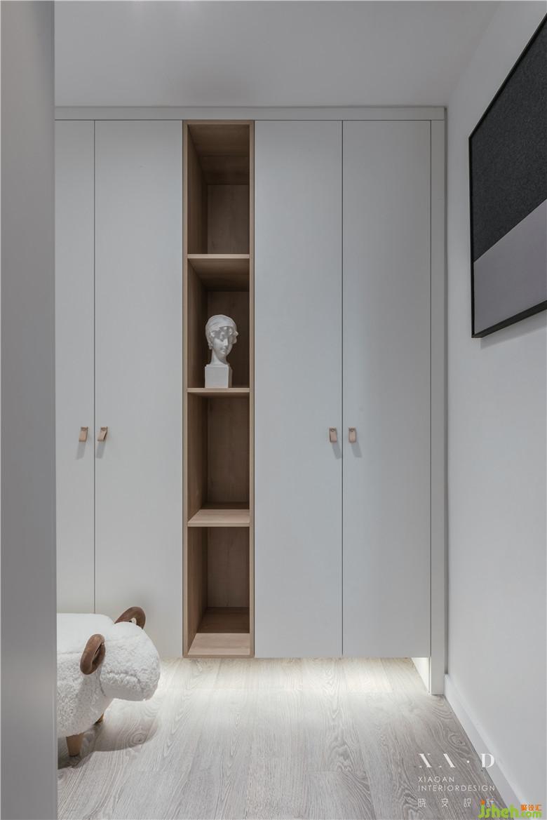 空間滿足儲物功能后,一縷木色從白色中退去。燈光營造了些許飄浮感,室內設計師沒有采用硬質拉手而是選擇相對柔軟的皮拉手,綿羊座凳的選擇都在表達業(yè)主內心的柔軟。